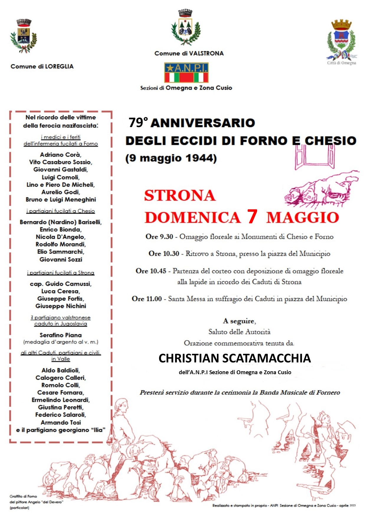 Pubblichiamo in allegato locandina e programma del 79° Anniversario degli Eccidi di Forno e Chesio - Domenica 7 Maggio