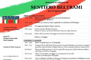 21° edizione del Sentiero Beltrami, camminata aperta a tutti sui sentieri del Capitano e dei suoi partigiani, che si terrà nei giorni 16-17/08/2023.